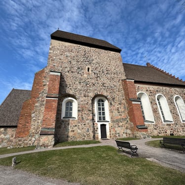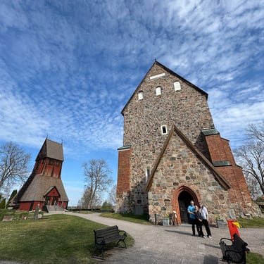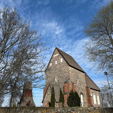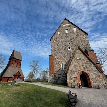 The medieval church at Gamla Uppsala is one of the most layered buildings in Sweden. Built primarily in the 12th century, it served briefly as an archbishop's cathedral before the see moved to the new Uppsala. What stands today is only part of the original structure — but it is still stunning, built in rough granite and brick, with a separate wooden bell tower that adds to the sense of accumulated time.